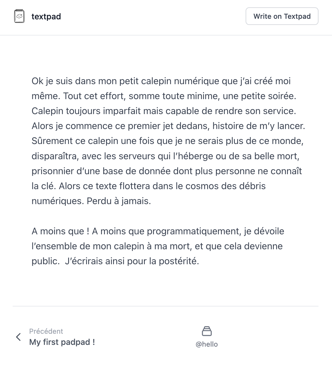 Pick a username, mark documents as public, and you've got your own blog at username.textpad.cloud