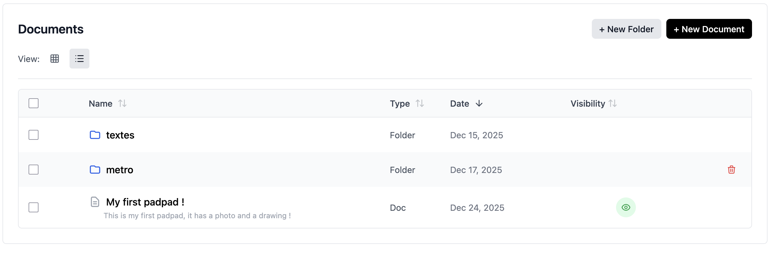 Toggle visibility with one click. See at a glance which documents are public and which are private. You're always in control.